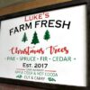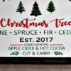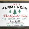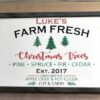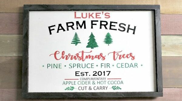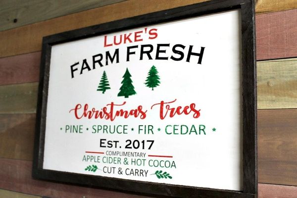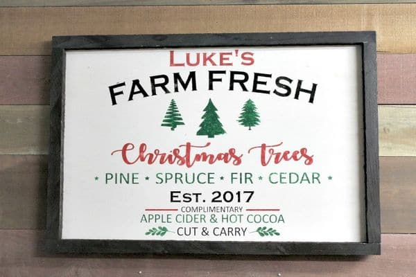 Our Custom Christmas Tree Farm Sign is 16 inches by 24 inches. Made from hand-selected wood. Which is also hand-painted to give a worn look. Framed with rustic brown wood. Very cute sign to give as a gift. We gave one to a friend with their son’s name on it. Therefore making it a great Christmas decoration and it’s built to last for a lifetime. Hanger included.