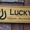 Hang this stall name plate Lucky Horseshoe design sign in the barn it’s built to last and is perfect to hang outside or over a door because it’s sealed! Outfitting the new barn or stables? We can work with you on a package deal.
